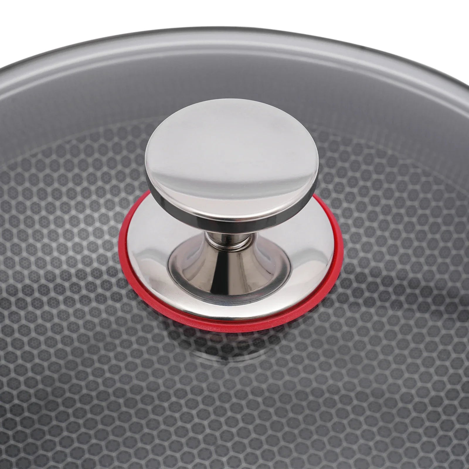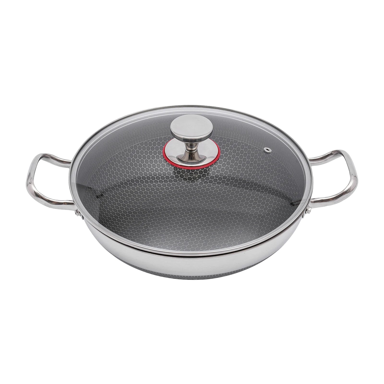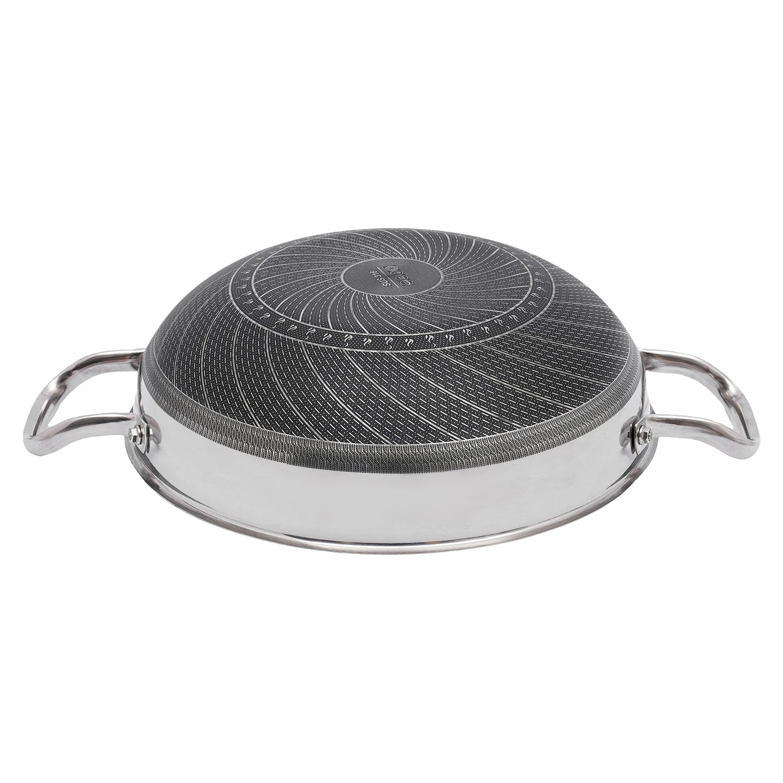 13-Inch Stainless Steel Skillet with Lid, Non-Stick, Kitchen Flat Frying Pan, Professional Cookware for All Cooktops Silver