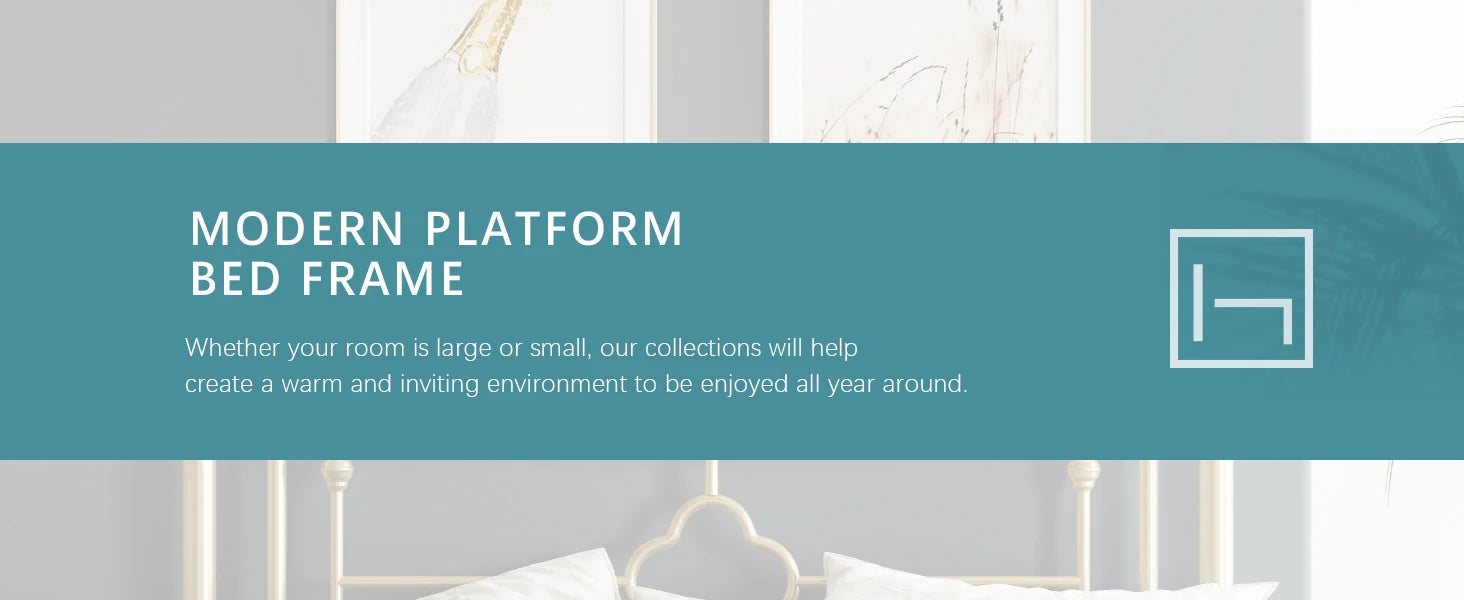 14 Inch Metal Platform Bed Frame, Vintage Victorian Style, Wrought Iron Headboard and Footboard