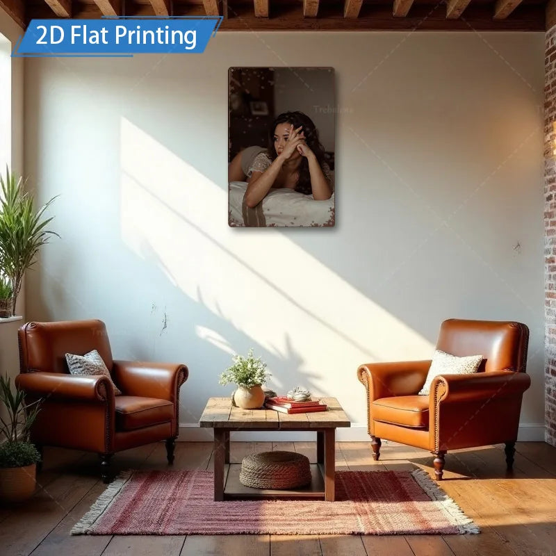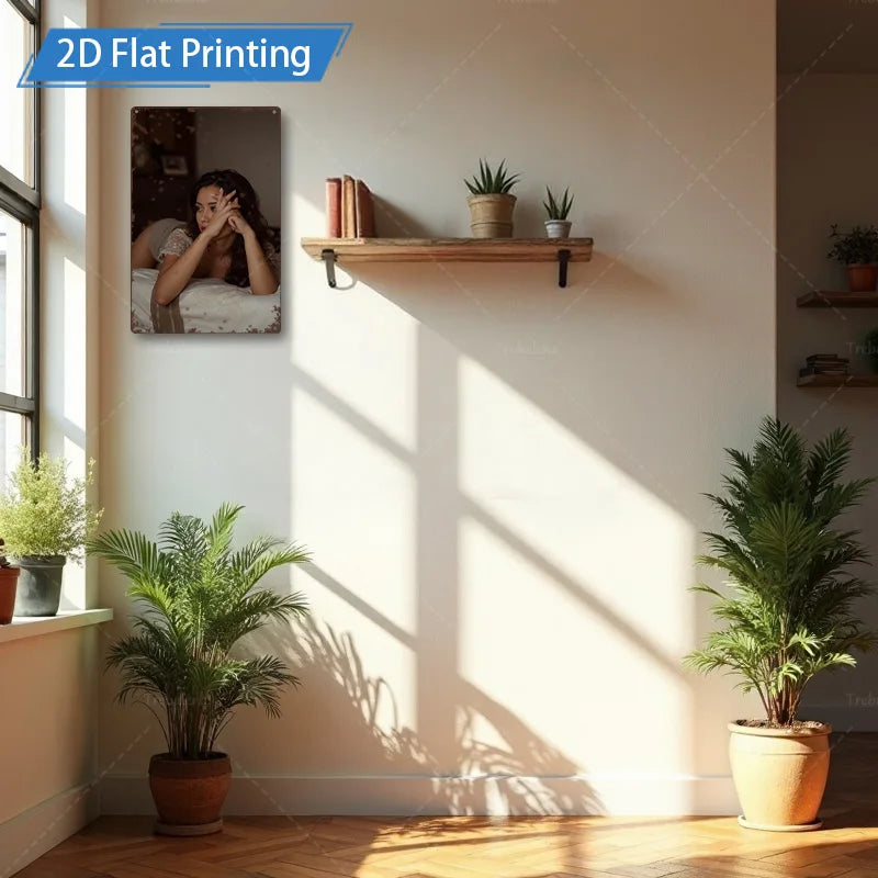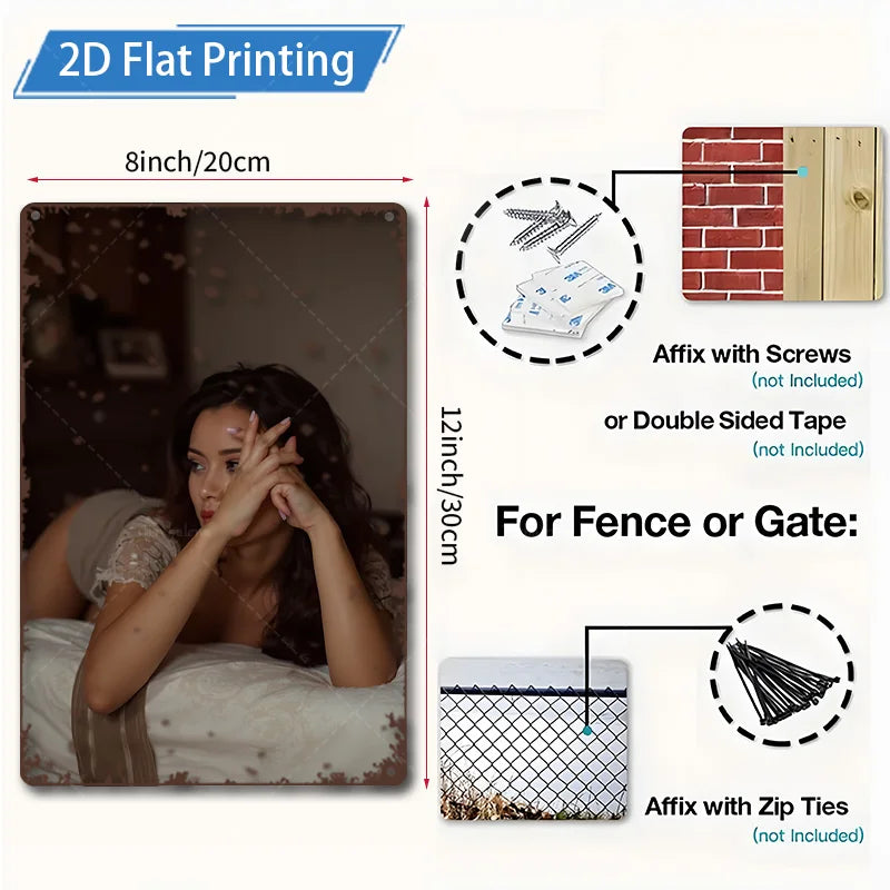 1pc Metal Sign, 4x16inch Rustic Style Woman in Bed 2D Flat Printing Wall Art for Living Room Decor