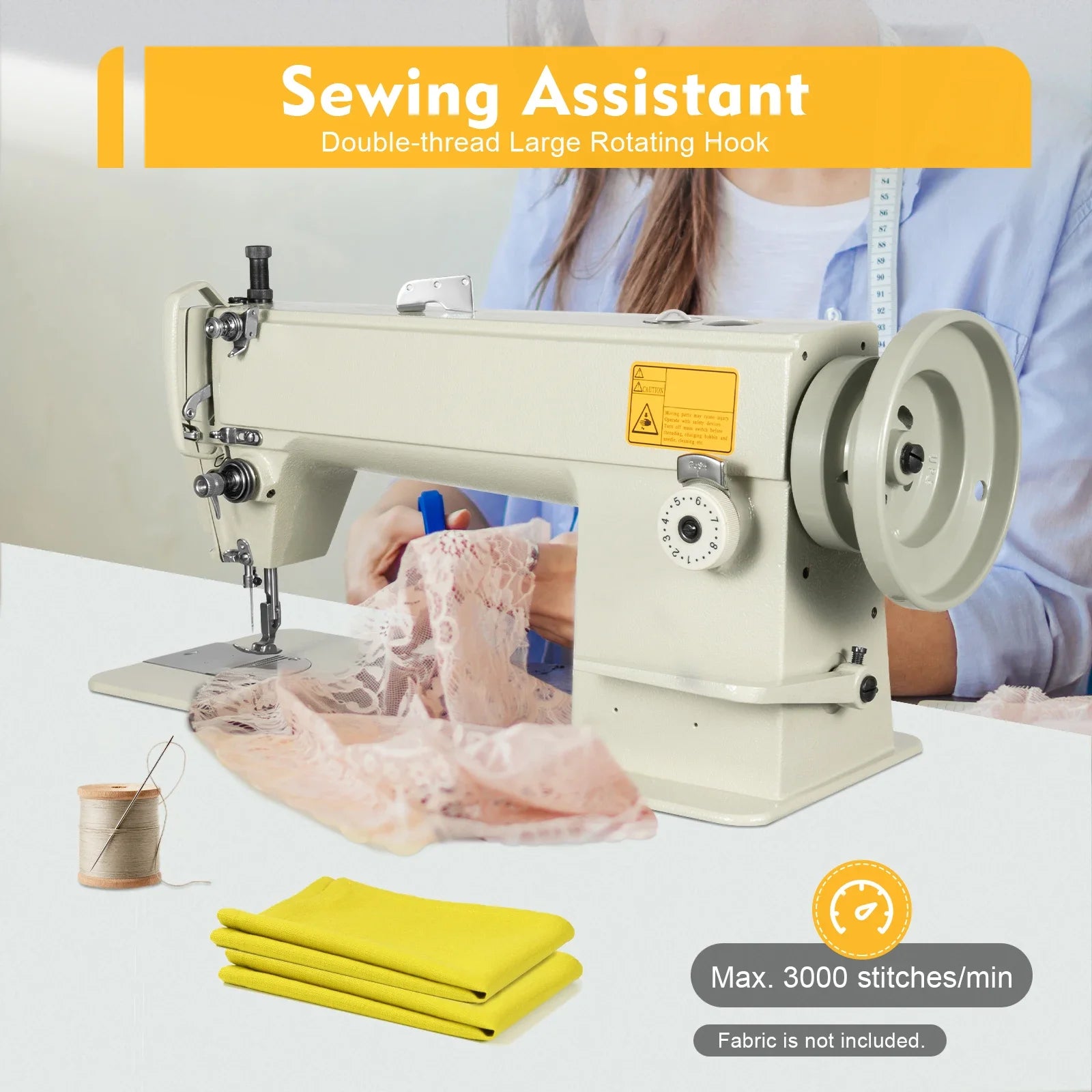 3000 Stitch/Min Industrial Sewing Machine Heavy Duty Cast Iron, 5.5 to 13mm Stitch for Thick Fabrics
