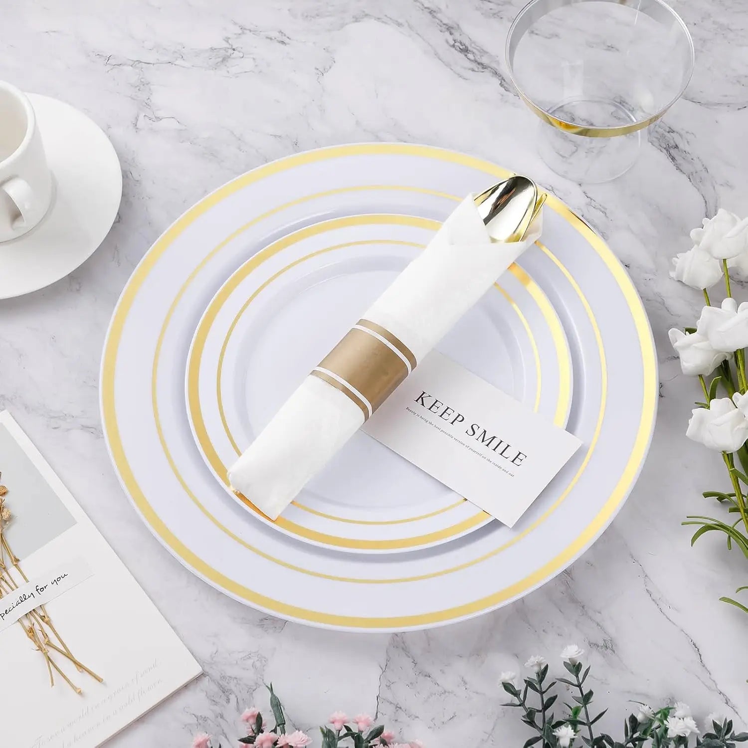 350PCS Gold Plastic Dinnerware Set, Disposable Party Plates for 50 Guests, Include: 100 Plastic Plates, 50 Pre Rolled Napkins