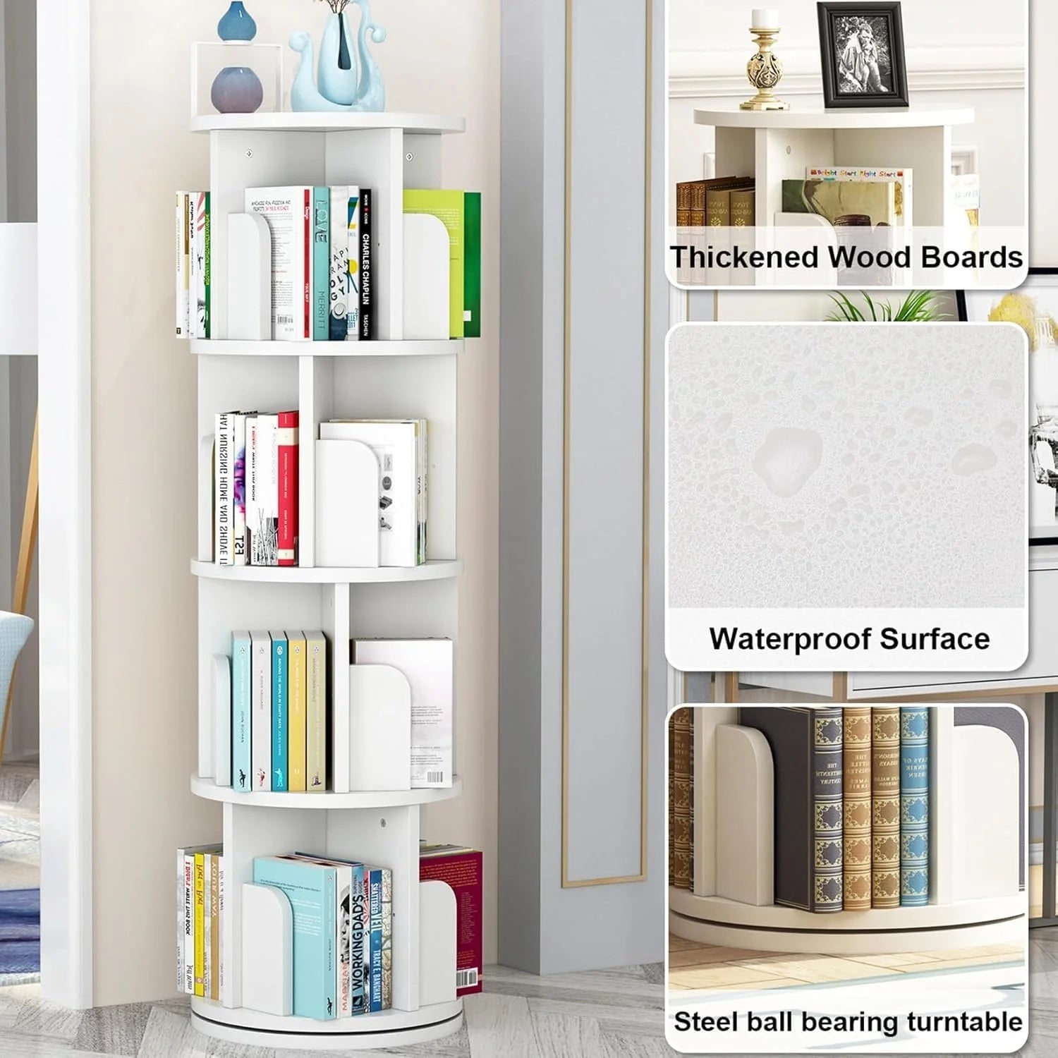 4 Tier Rotating Bookshelf Tower Floor Standing Storage Rack 360 Degree Revolvin Bookcase Narrow Bookshelf Organizer for Home