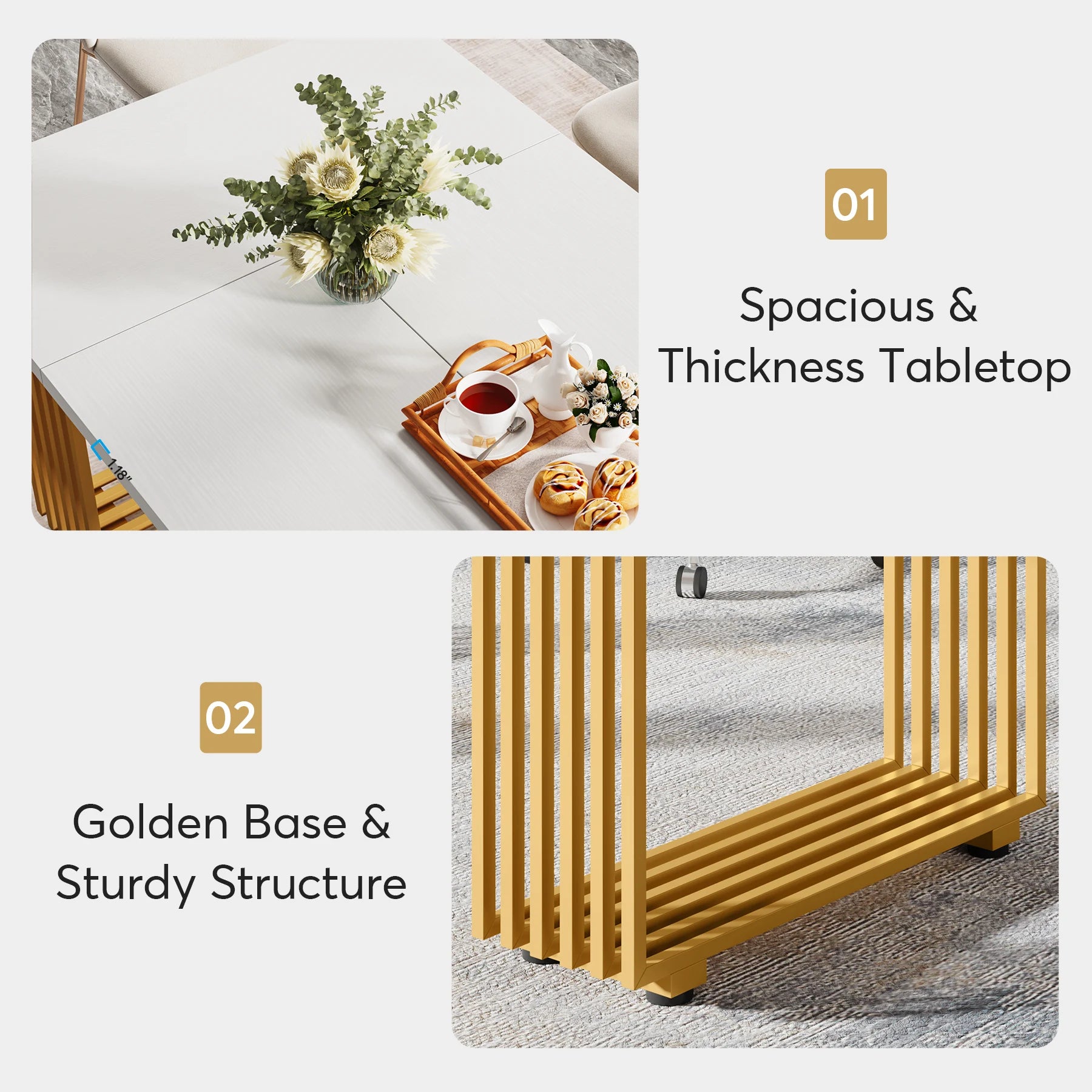 63-Inch Rectangular Dining Table for 4 to 6, Modern Kitchen Table with Faux Marble Table Top