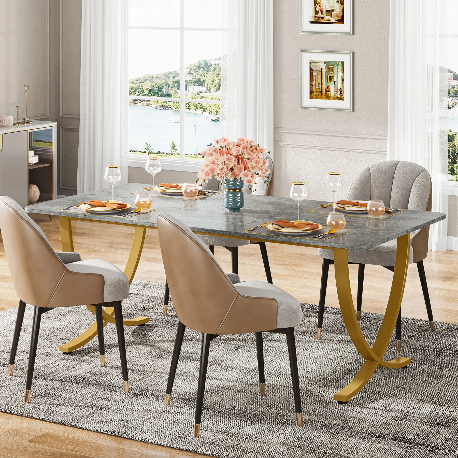 63" Modern Dining Table Kitchen Table with Faux Marble Top