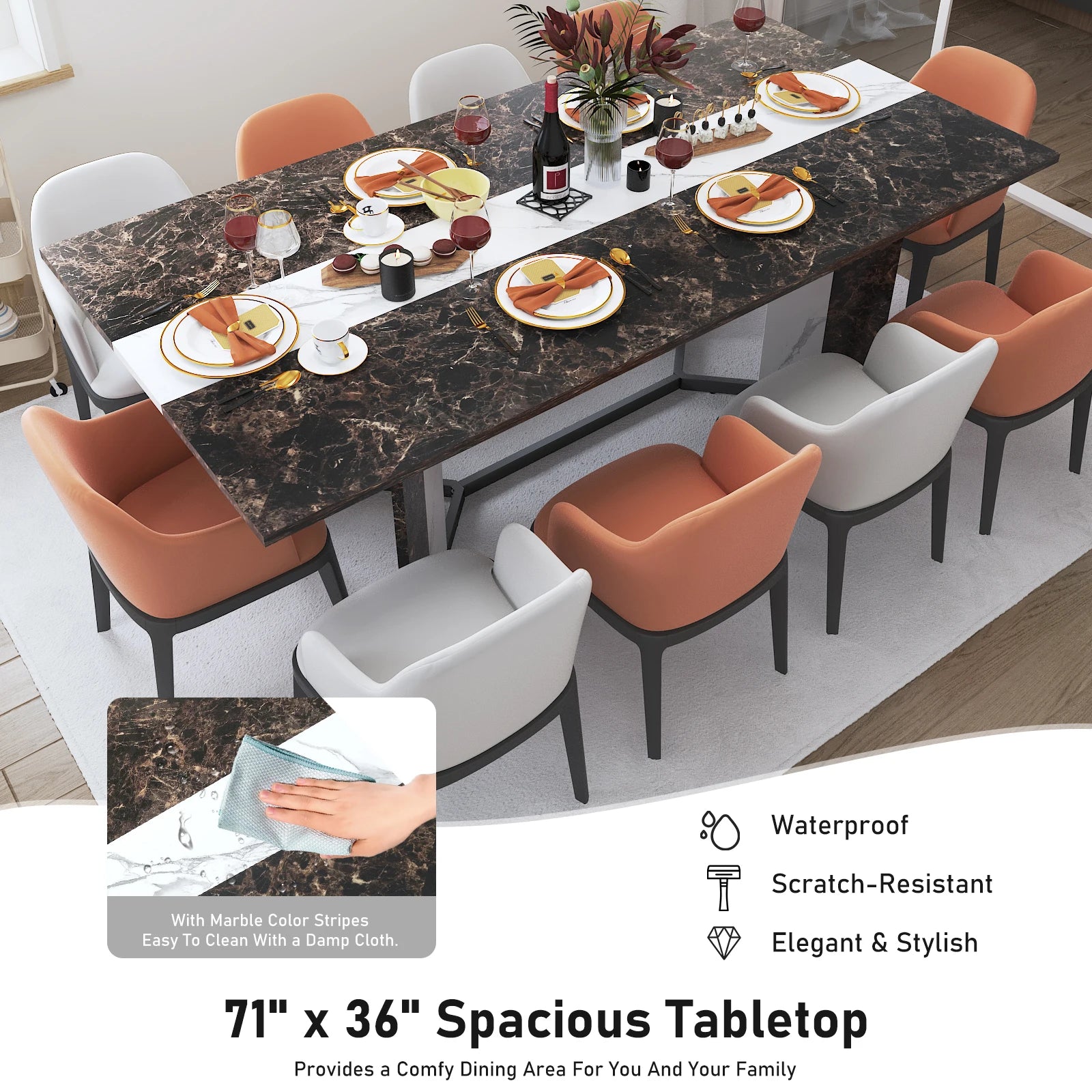 71In Large Rectangular White Dining Table for 4 5 6 8 10 People, w/Marble Color, Wood Tabletop, Metal Leg