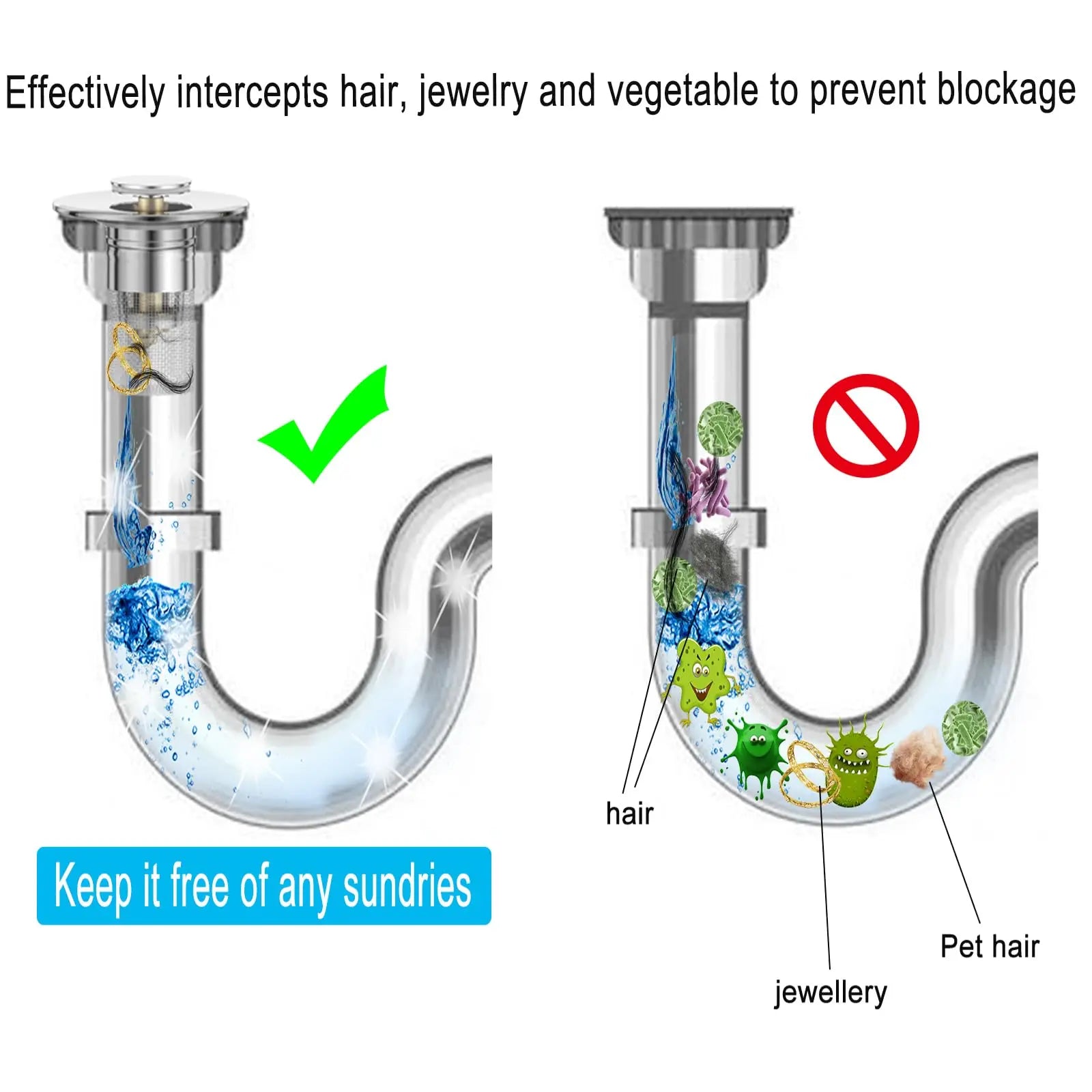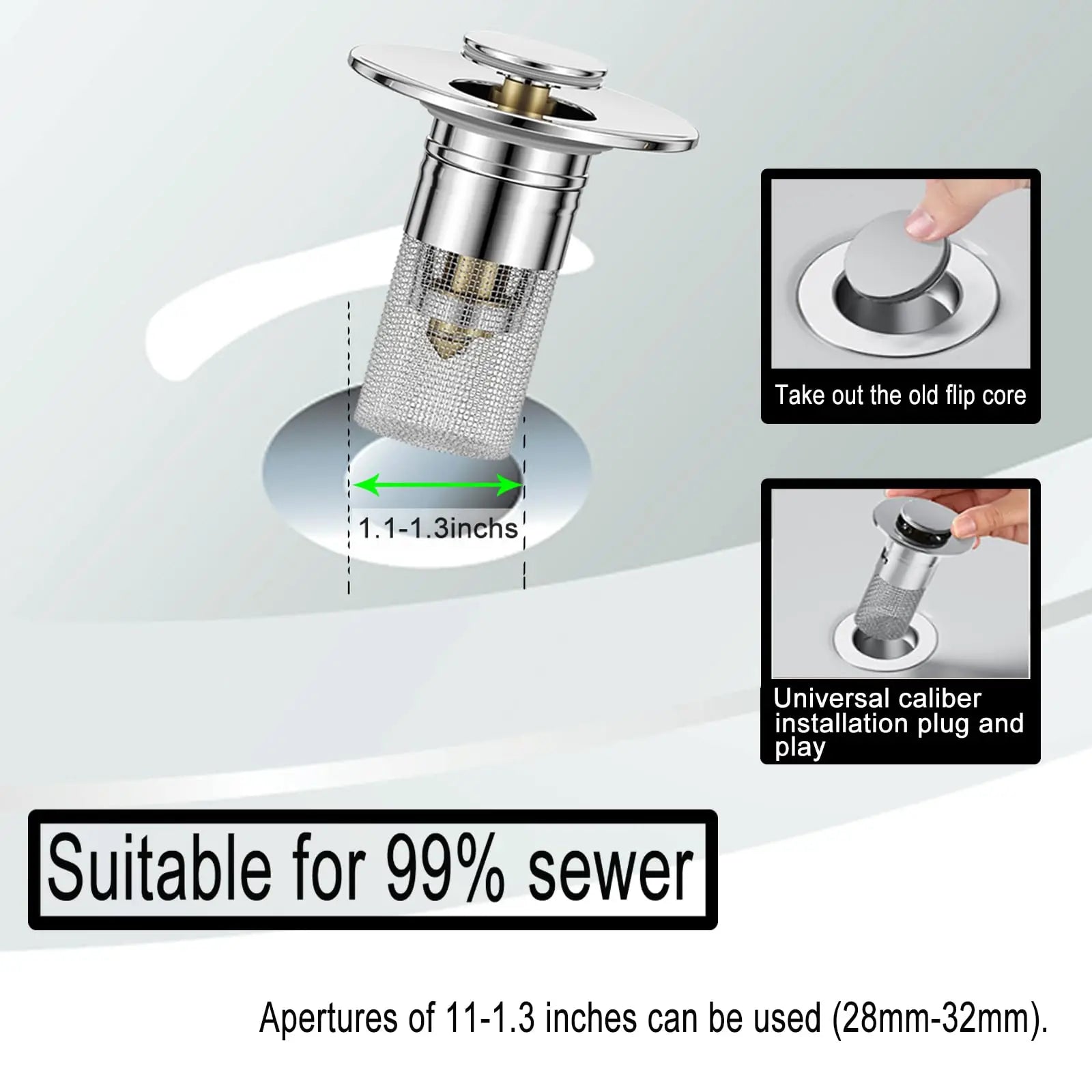 Bathroom Sink Drain Strainer - Pop-Up Filter with Removable Stainless Steel Hair Catcher & Drain Stopper for US Sink Replacement