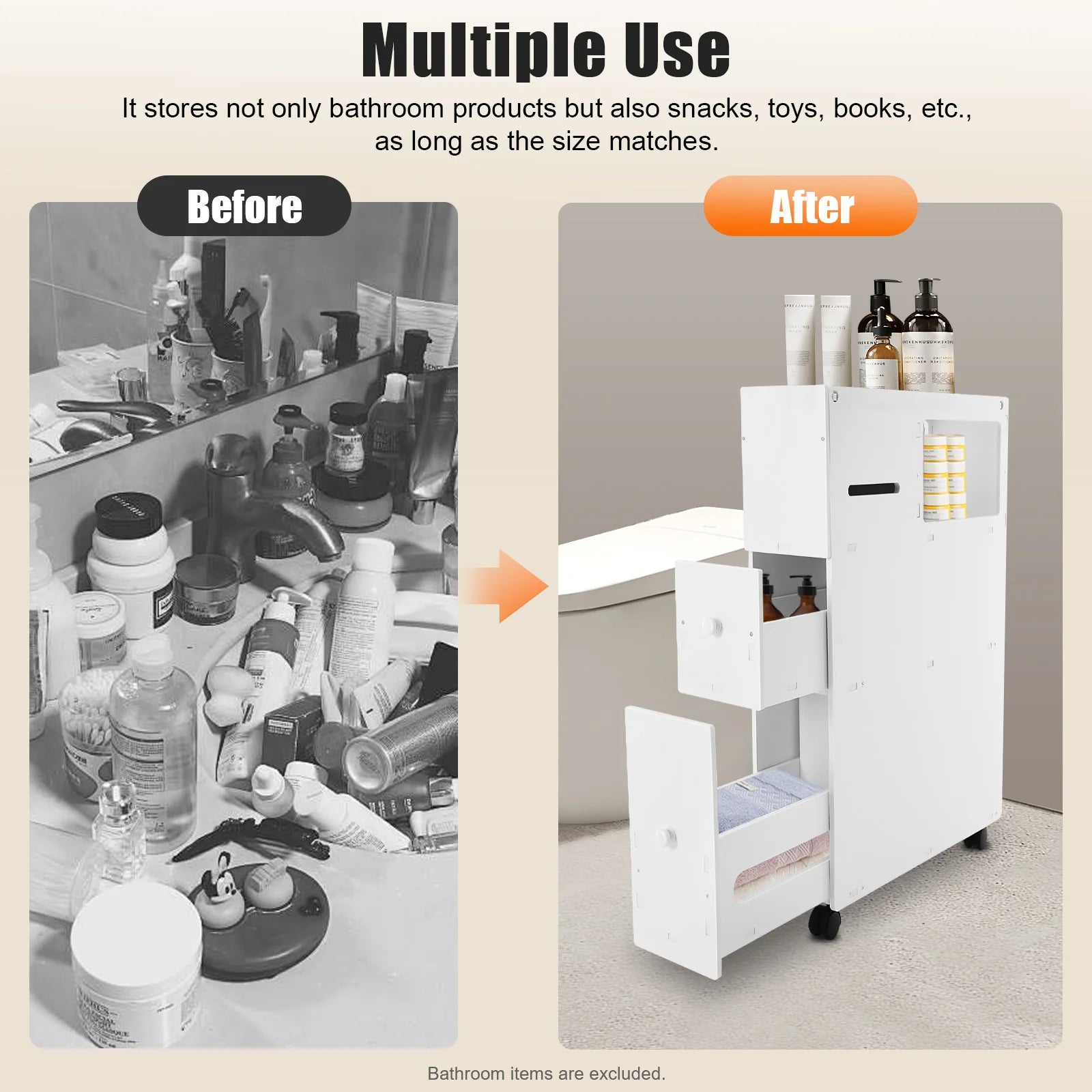 Bathroom Storage Cabinet, Narrow Floor Storage Cabinet, Storage Cabinet with Drawers 50kg Load-bearing Capacity