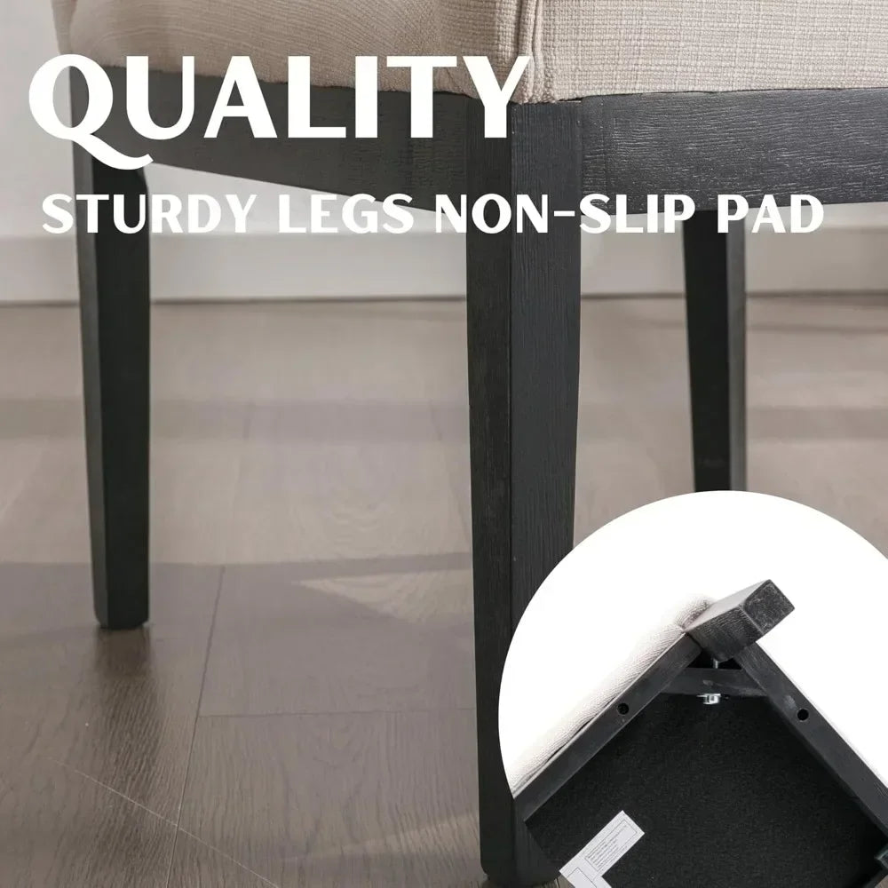 Beige Dining Chairs Set of 6, Mid-Century Modern Dining Chairs, Linen Upholstered