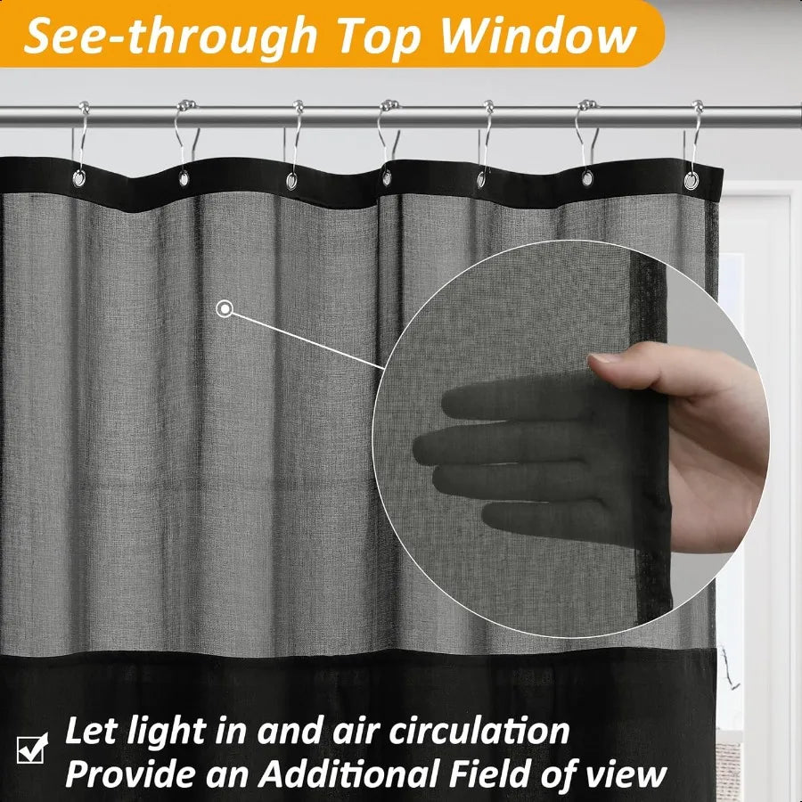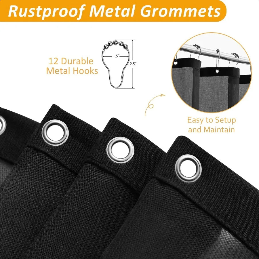 Black Linen Shower Curtain with Snap in Liner Set and Hooks Rustic Style Modern Farmhouse Shower Curtain Heavy Duty Burlap Clot