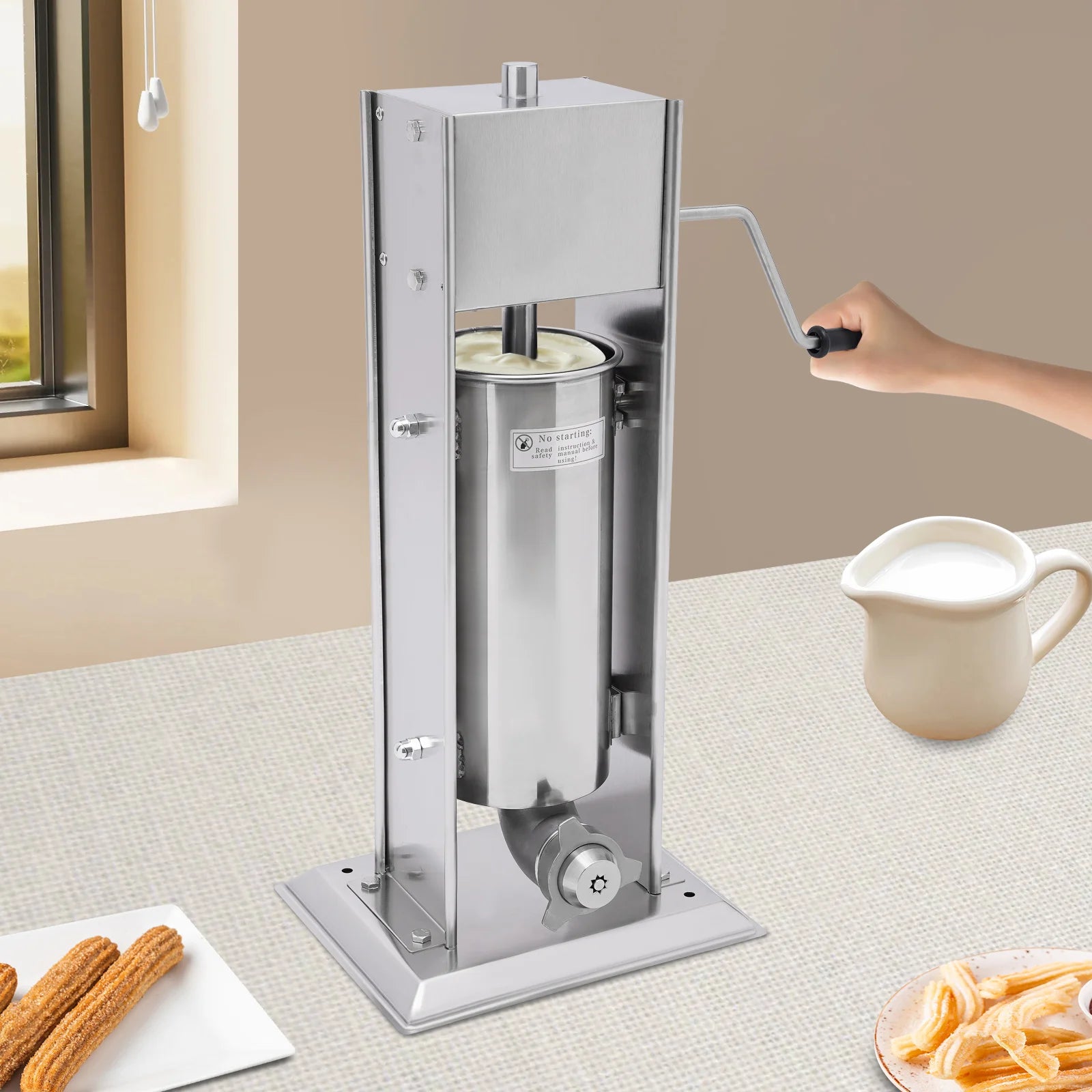 Churro Maker Machine 5L Stainless Steel Homemade Vertical Chocolate Caramel Filling Kitchen Machine with 6 Nozzles & 2 Speed