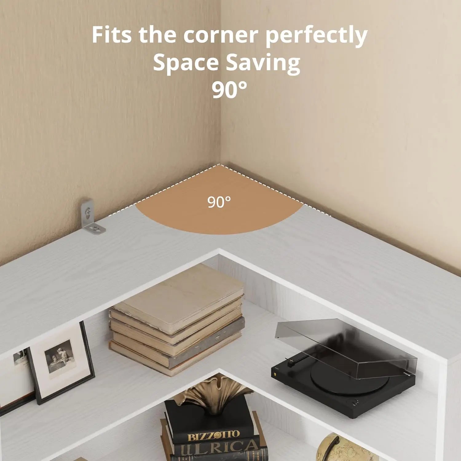 Corner Bookshelf with Baffles, Corner Bookcases 6 Tiers, Shelf Storage Rack for Living Room, Home Office