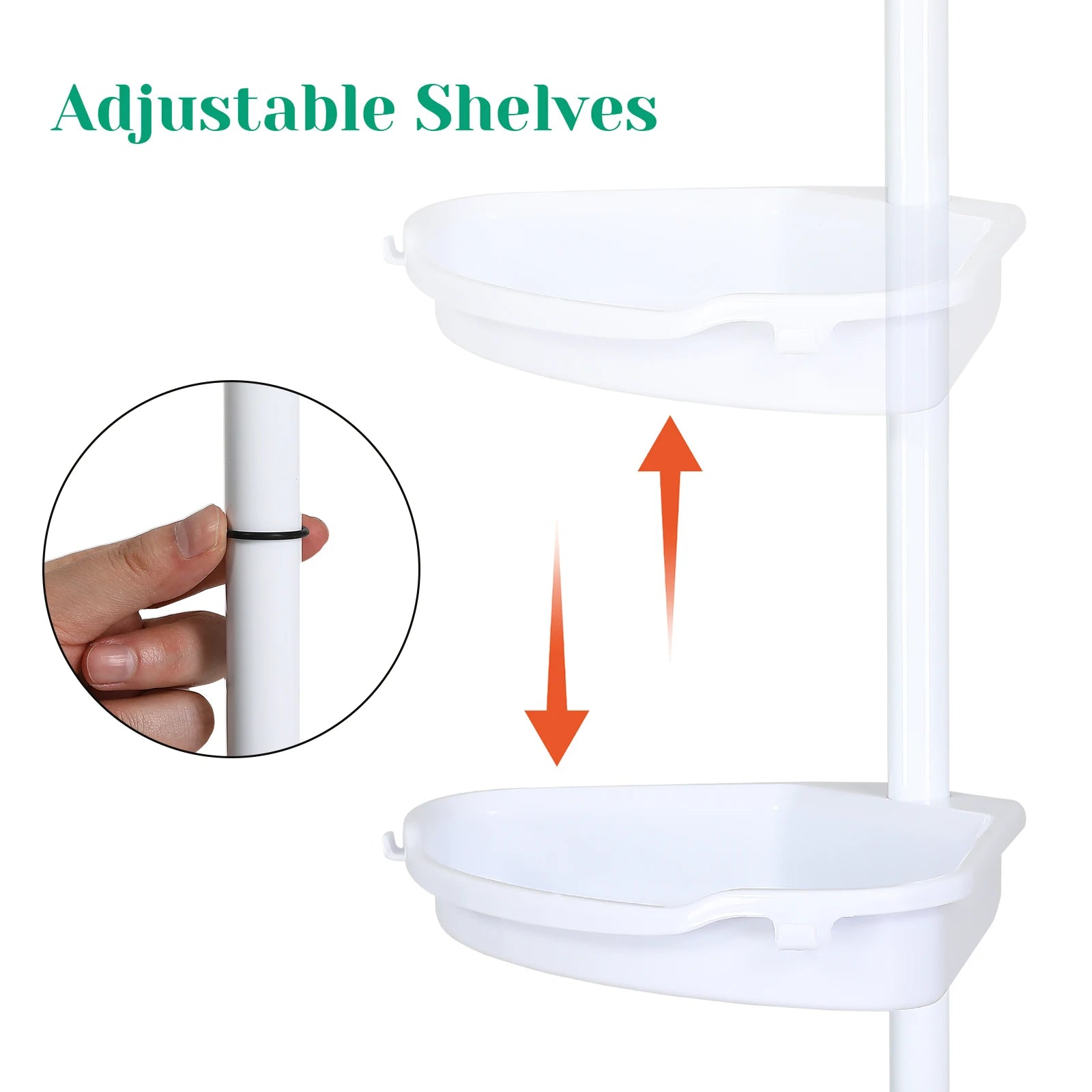 Corner Shower Caddy with Tension Pole 4-Tier Adjustable Shelves Bathroom Storage Organizer with Rubber Pad