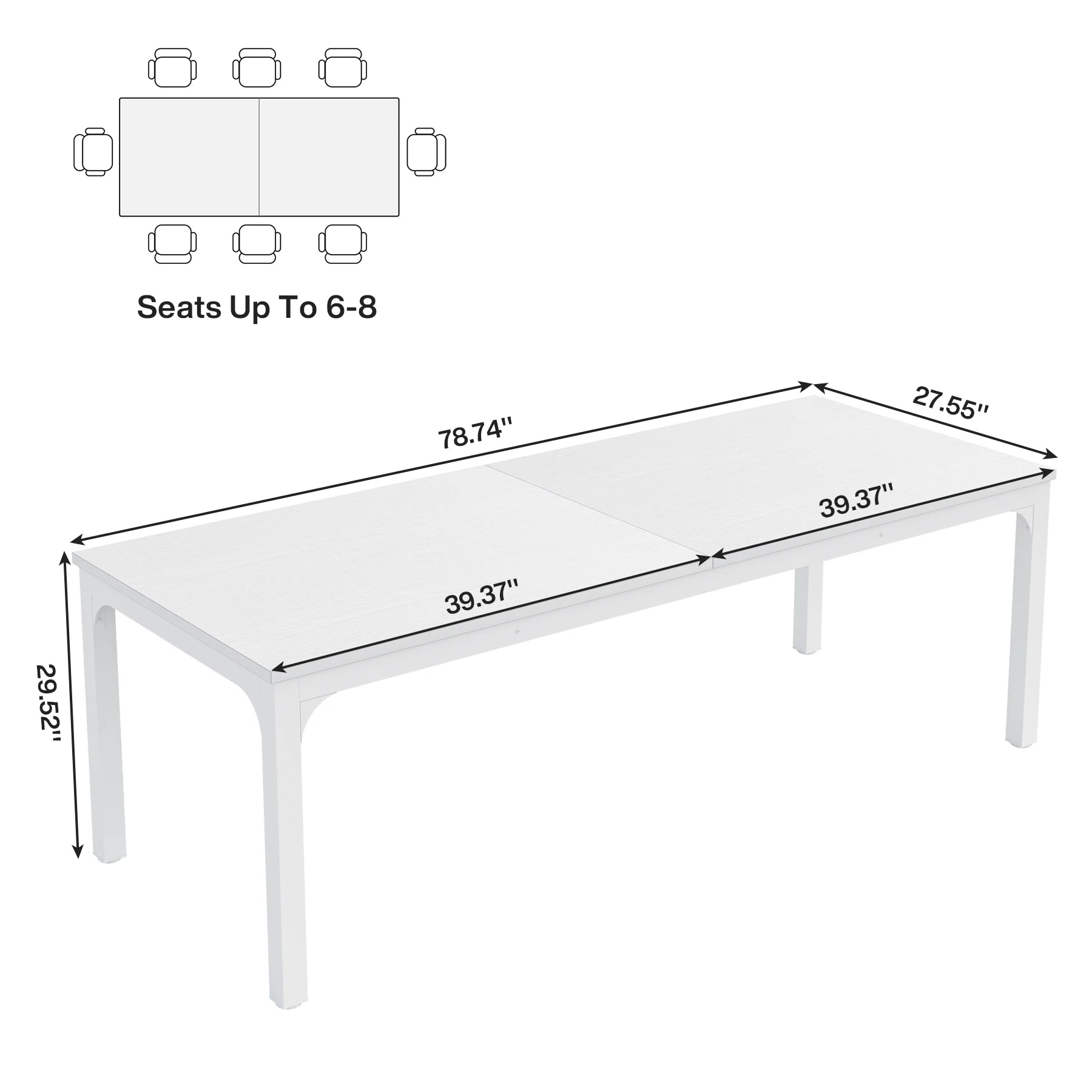 Dining Table for 6-8 People, 200cm Large Narrow Long Rectangular Kitchen Dinner Table, Rustic Wood Dining Table