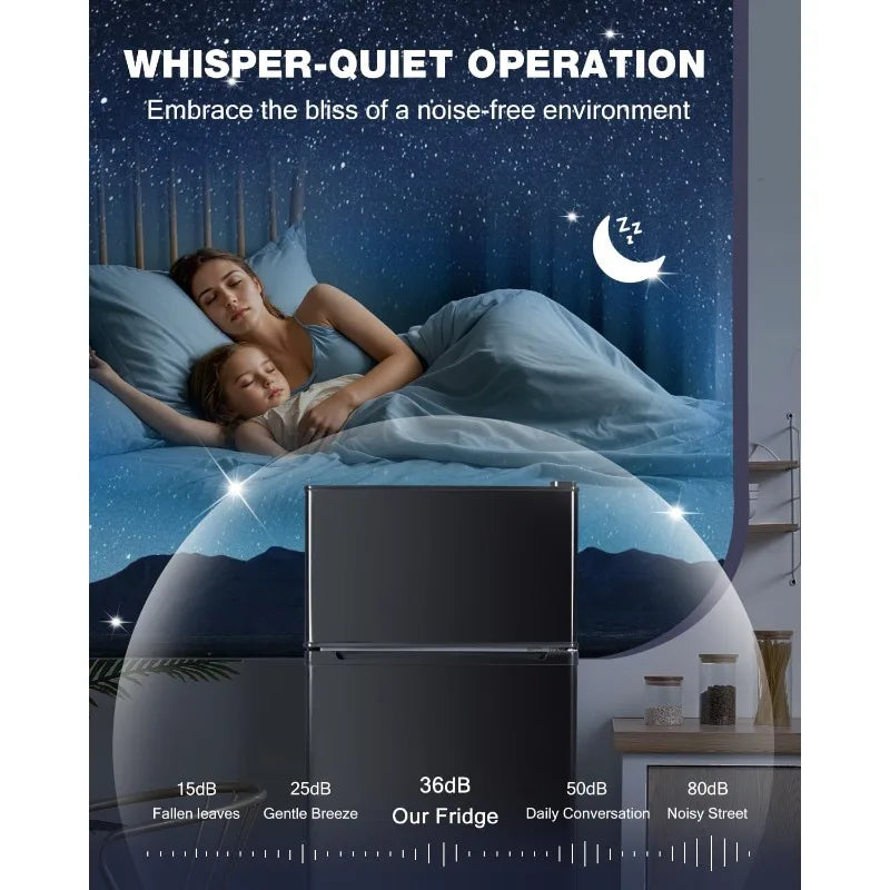 Double Door Refrigerator with Freezer, 4.5 Cu. Ft, Small Fridge with Freezer, 7 Settings Temperature Adjustable