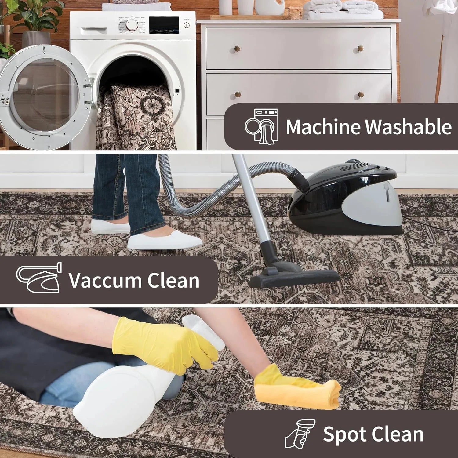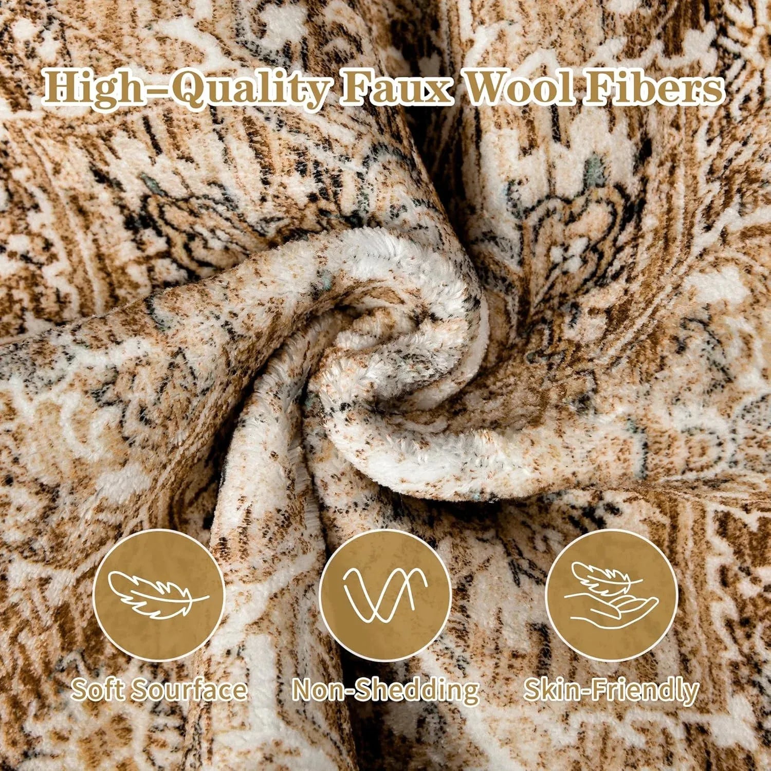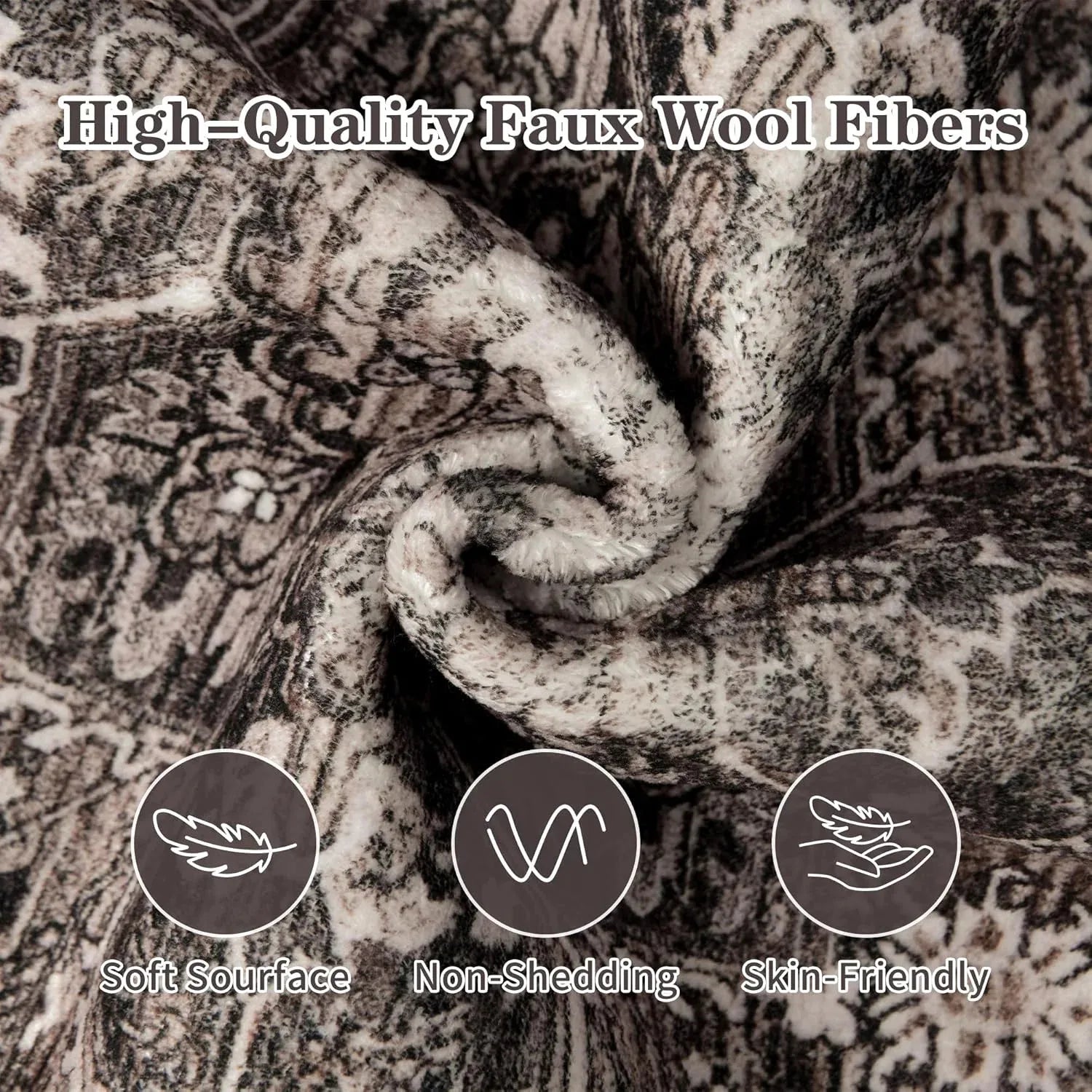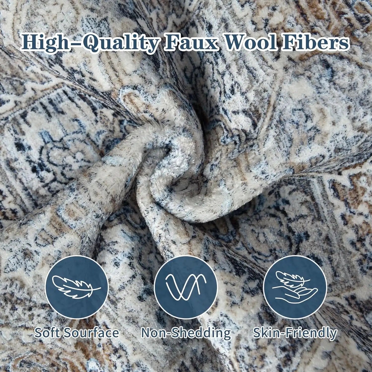 Faux Cashmere Vintage Printed Rug Area Rugs, Low Pile Rugs for Living Room Bedroom