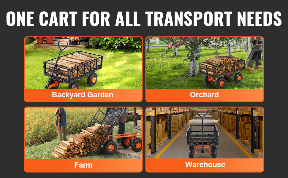 Garden Cart Sturdy Metal Utility Wagon with Simple Assembly Versatile Dump Cart Wheelbarrow with 400/880lbs Capacity