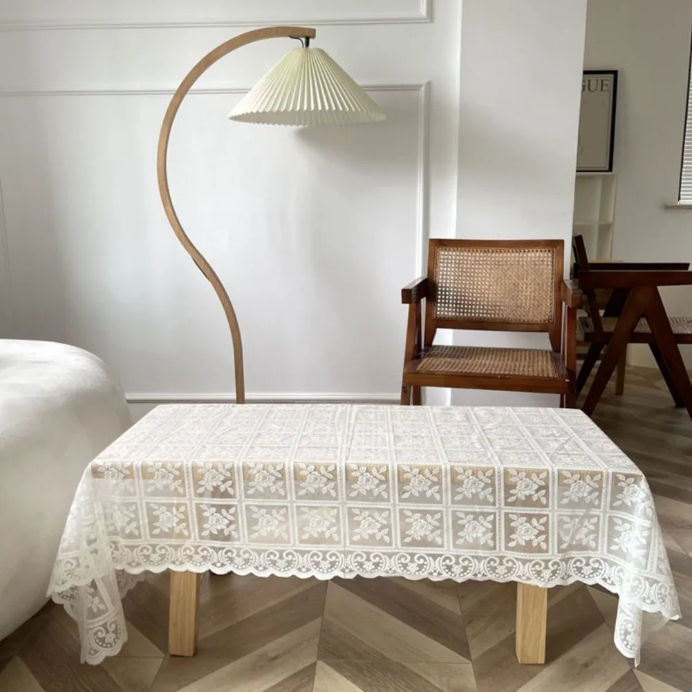 Nordic White Lace Hollow Tablecloth Vintage Rose Flower Pattern
