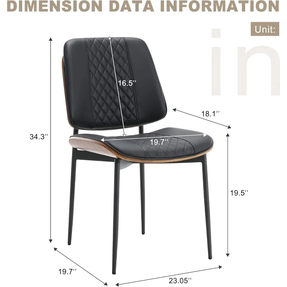 Set of 2 PU Leather Dining Chairs - Mid-Century Bentwood w/ Metal Legs, Modern Walnut Style
