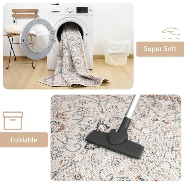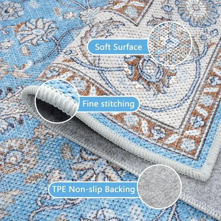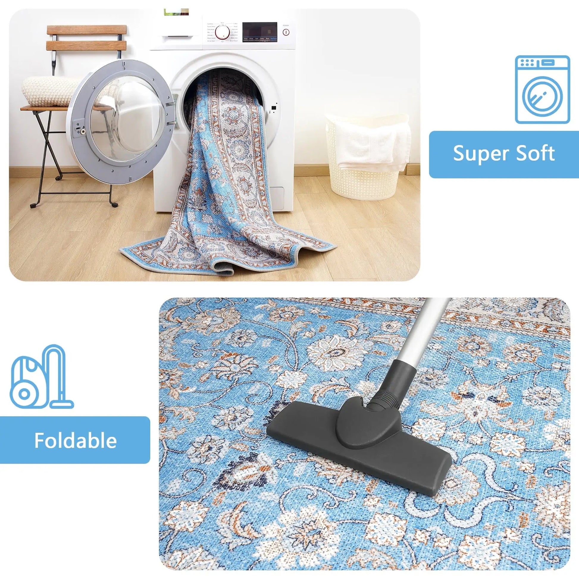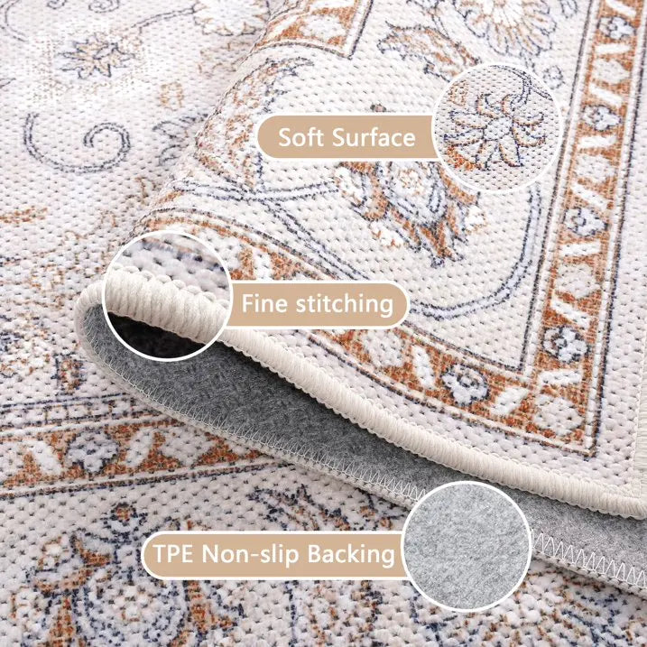 Vintage Floral Soft Accent Area Rug Low-Pile Carpet for Living Room Bedroom