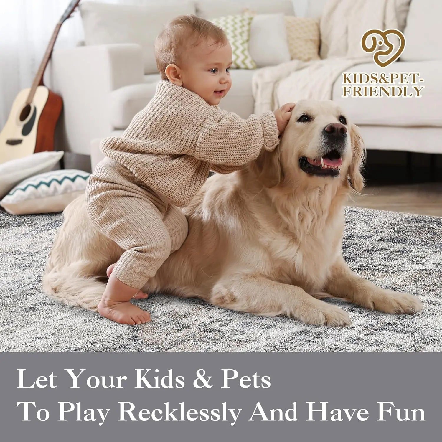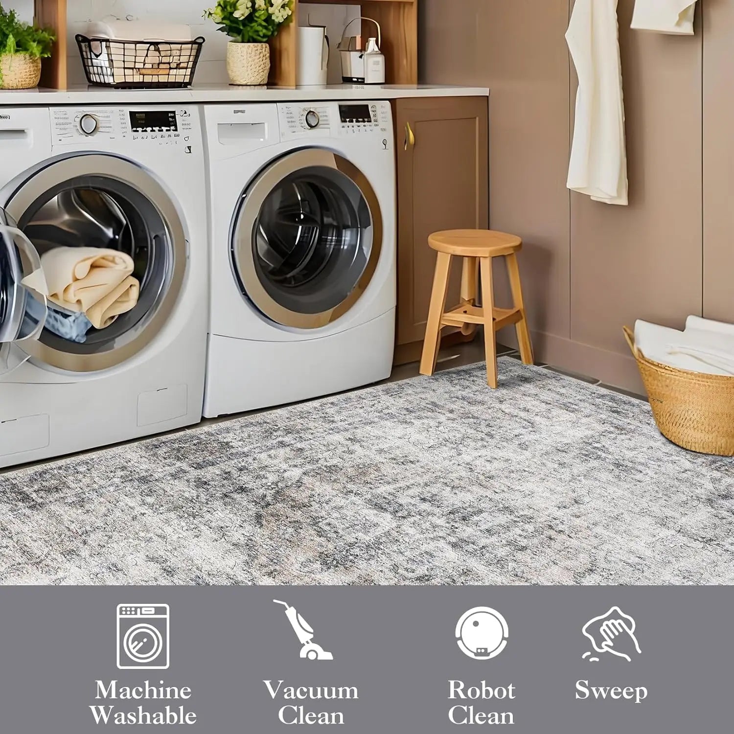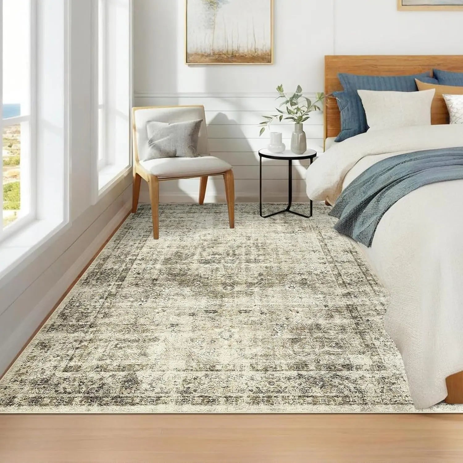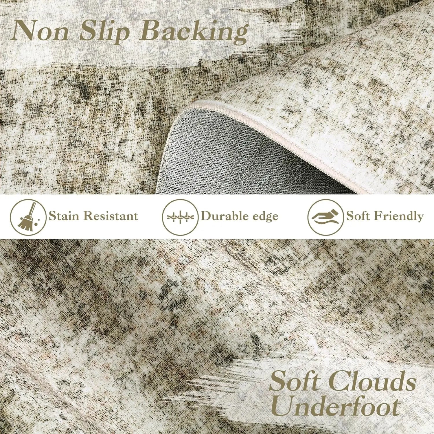 Washable Area Rug Stain-Resistant Throw Rug Indoor Carpet with Non-Slip Backing Foldable Floor Cover for Living Room, Bedroom