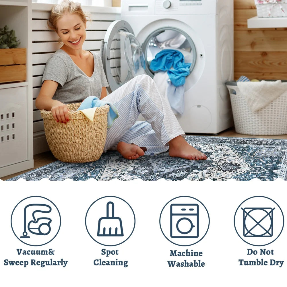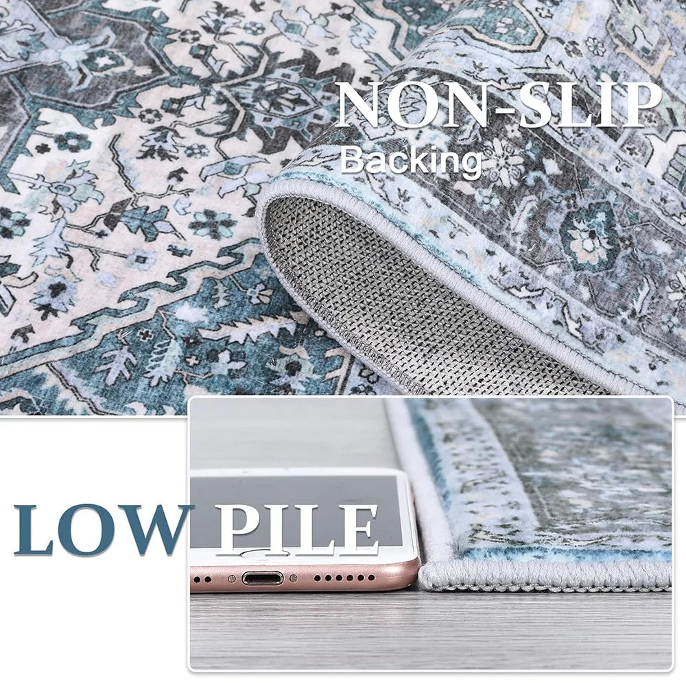 Washable Area Rugs 8x10 Living Room Rug Vintage Medallion Soft Floor Cover Low Pile Non-Slip