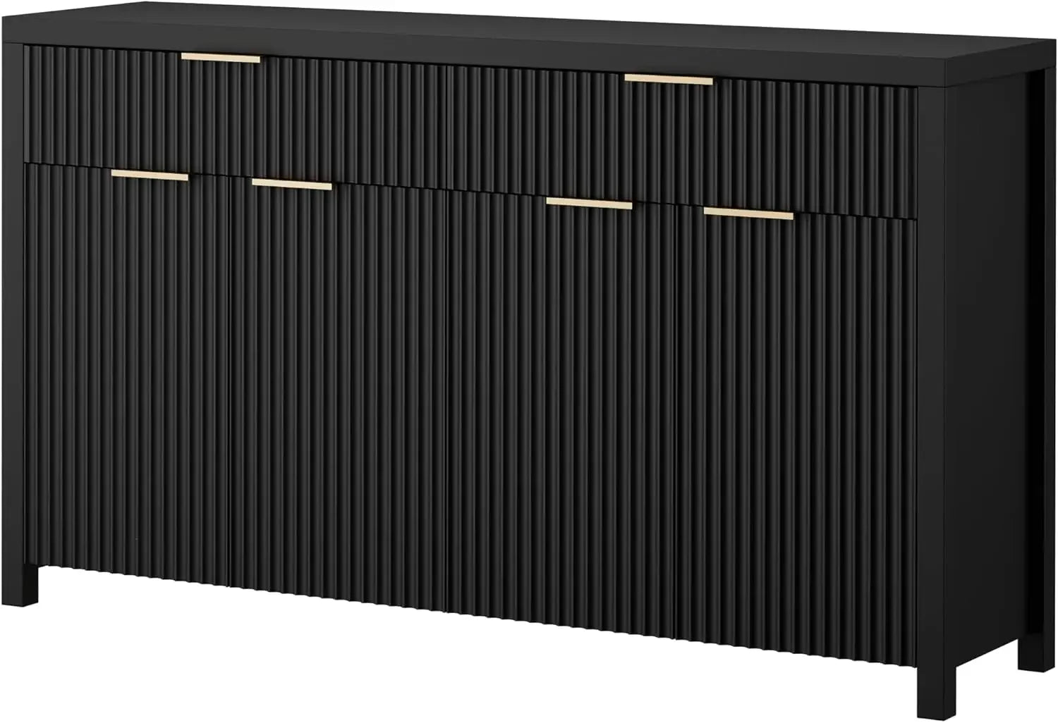 "White Fluted Storage Cabinet with Drawers – Buffet & Sideboard Design with Adjustable Shelves for Kitchen or Living Room"