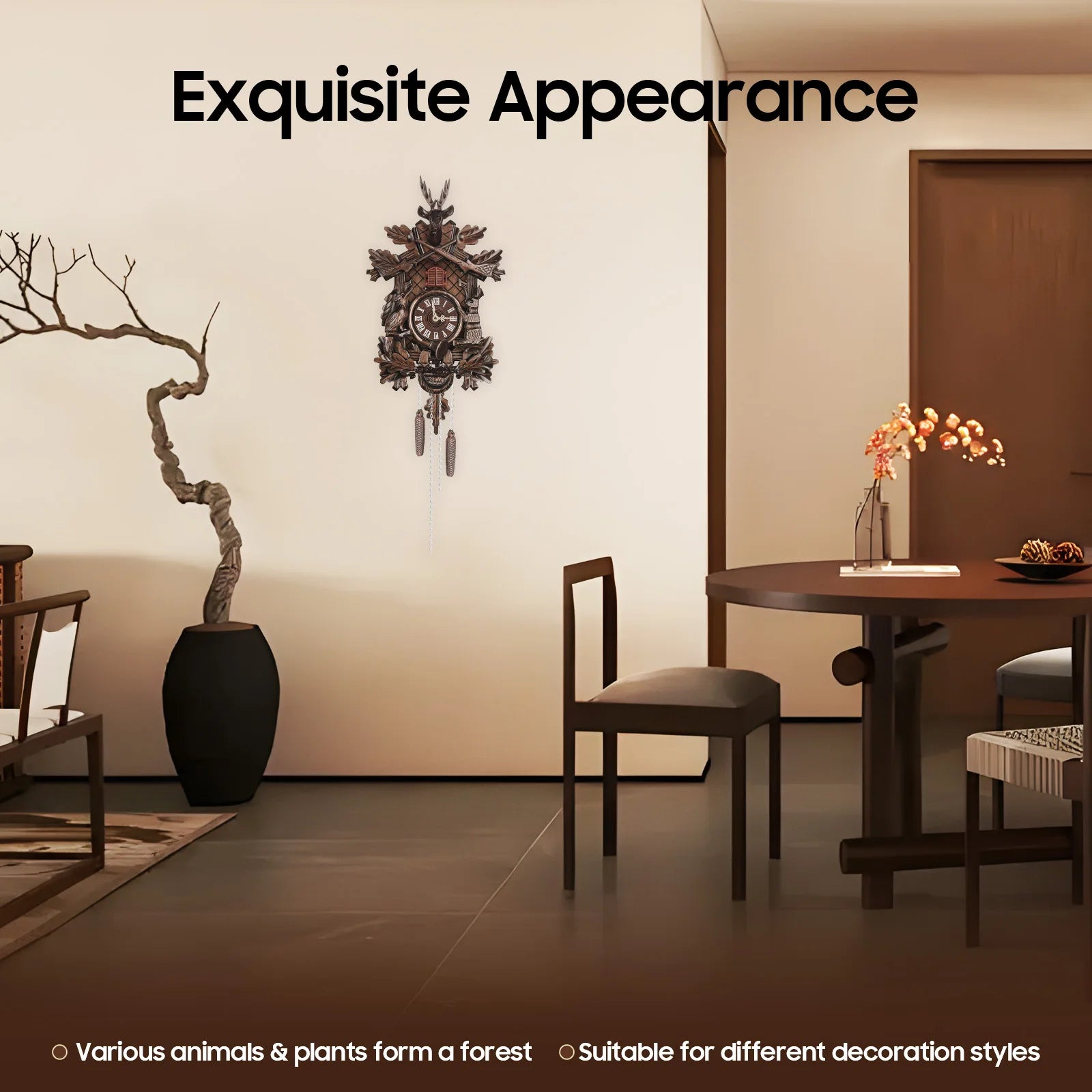 Wooden Cuckoo Clock with Pendulum Bird Automatic Chiming for Living Room Kitchen Office Wall Silent Quartz Movement