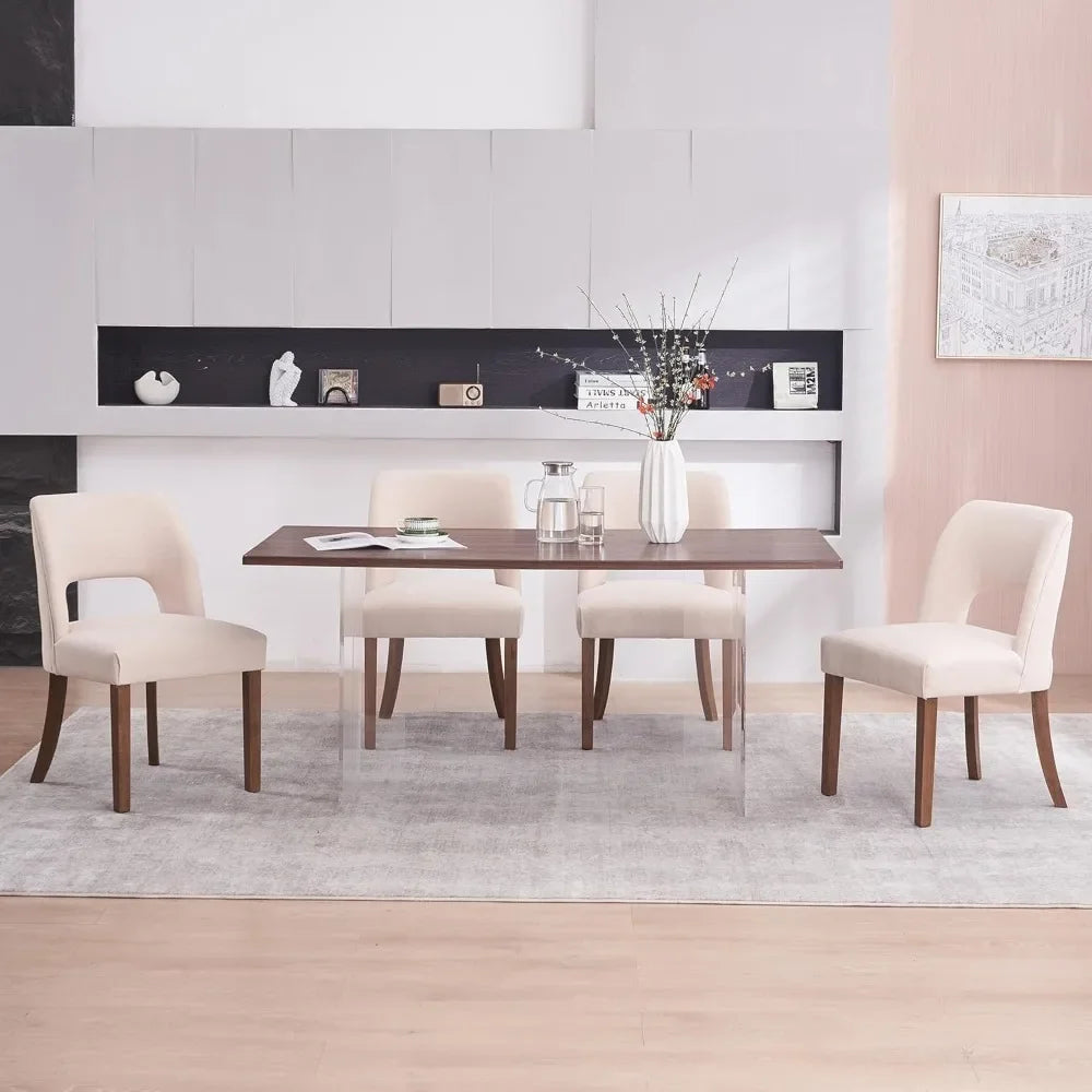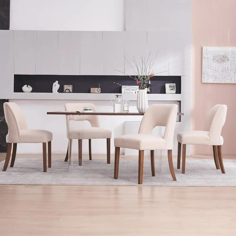 Wooden Dining Chairs Set of 2, Modern Fabric Upholstered Dining Room Chair Kitchen Chairs, Rustic Farmhouse Seating w/Comfort Cu