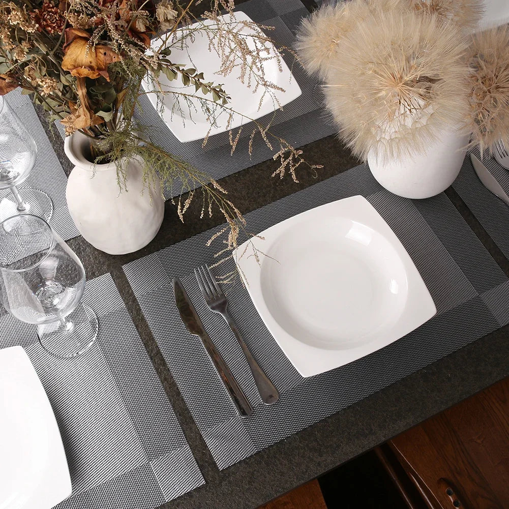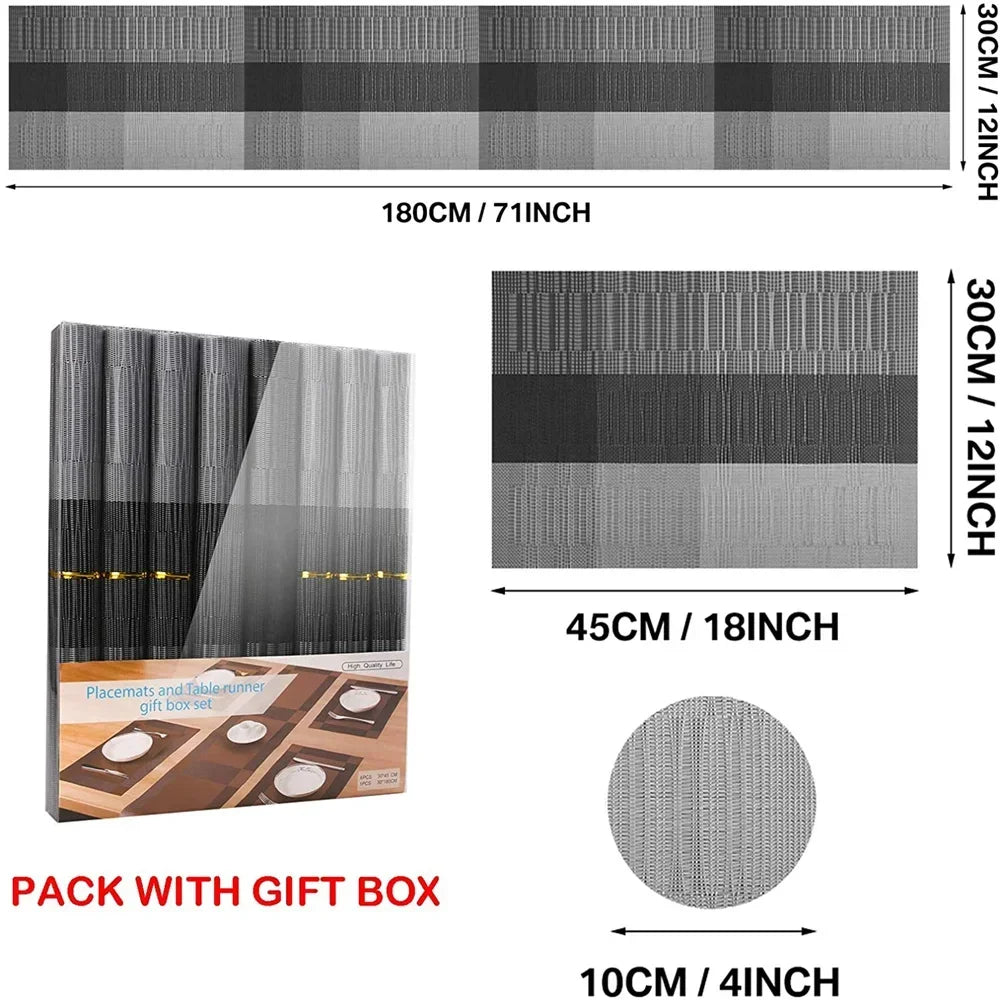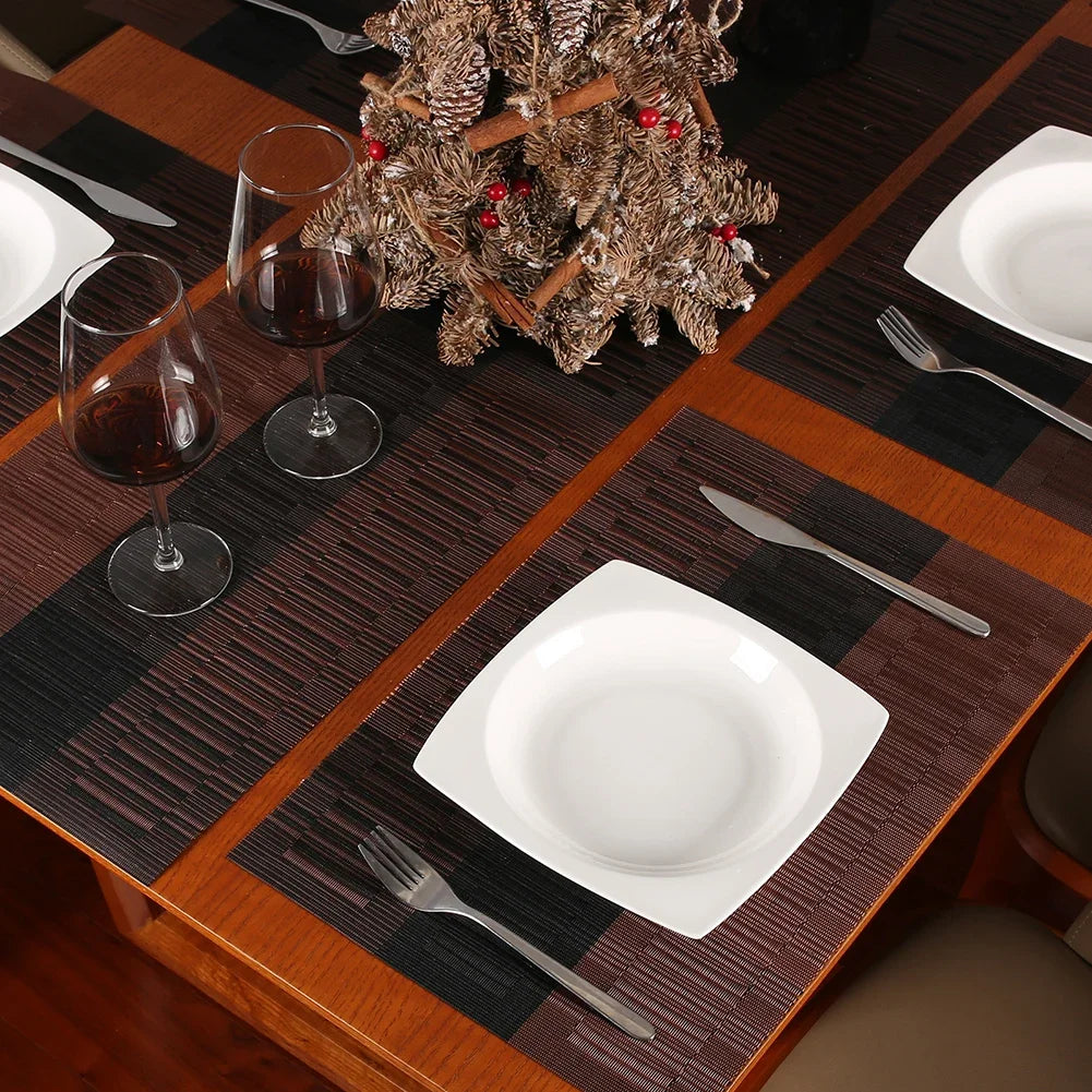 Woven Vinyl Placemats Set Place Mats Crossweave Non-Slip Washable Table Mats for Dining Table Kitchen Reataurant Decor Coasters