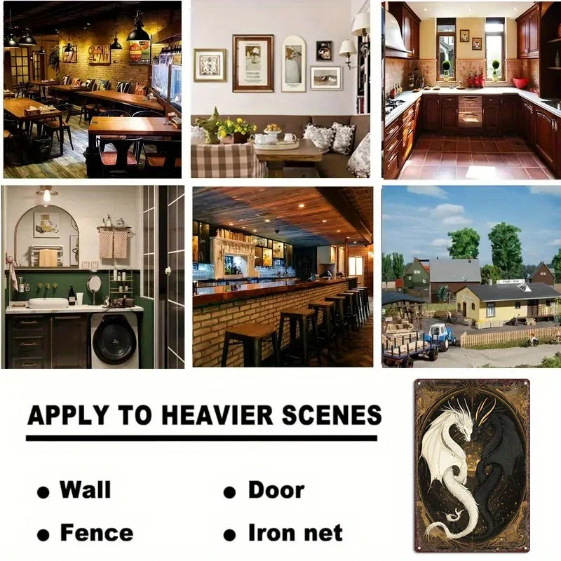 Yin-Yang Dragons Metal Sign - Vintage Aluminum Wall Art, 8x12 inches, Duality Harmony for Home